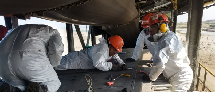 Terminal Portuario Matarani s/n Islay, Arequipa - Servicio de cambio de faja y ejecución de 03 empalmes de faja tubular de 1372 mm / EP1000 / 4PYL / 5X2 de 800 metros, vulcanizado en caliente con prensa.
