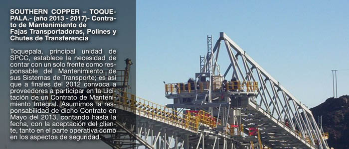 Tacna - Contrato de Mantenimiento de Fajas Transportadoras, polines y chutes de transferencia. Mantenimiento Integral.