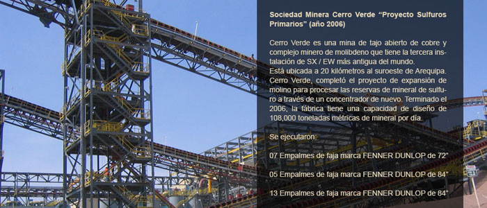 Arequipa - Proyecto Sulfuros Primarios - Se ejecutaron 25 empalmes en fajas FENNER DUNLOP de 72" y 84" y 2 empalmes en faja CONTITECH de 84"